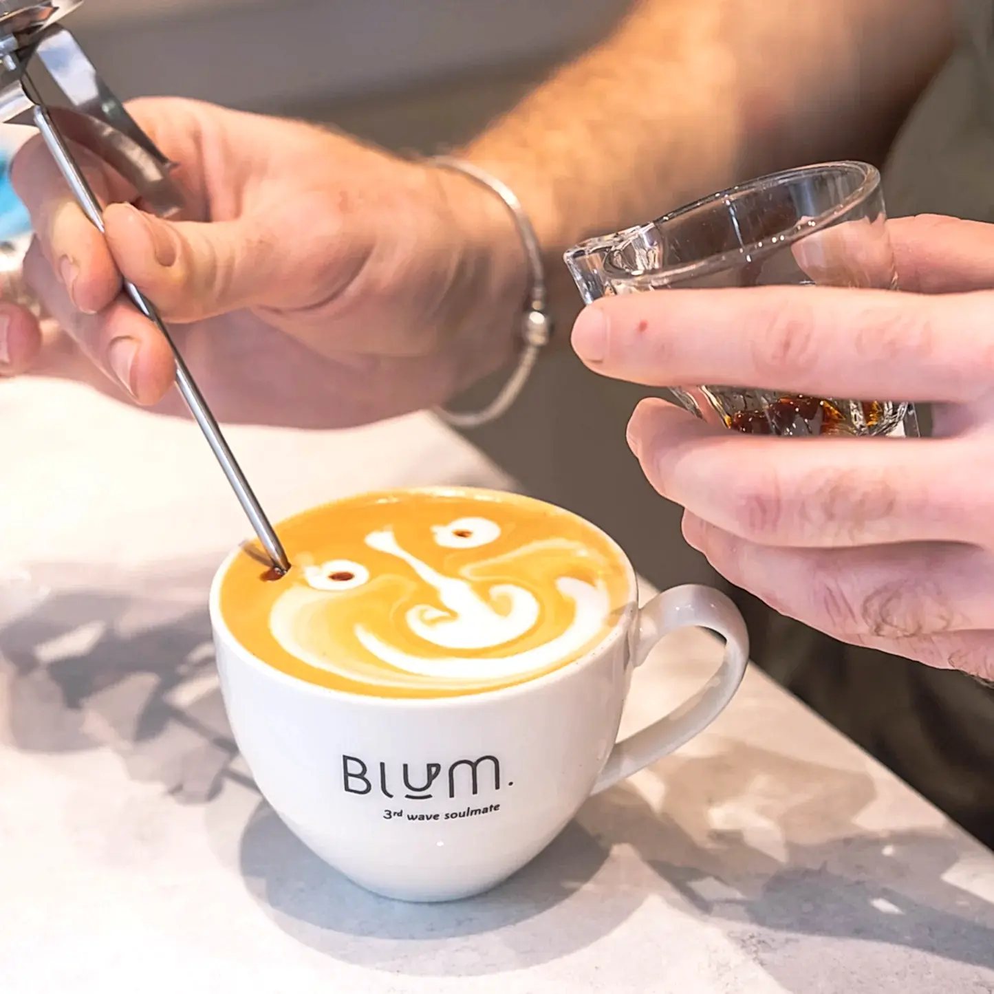 ‘Blum your day/ Gününüzü çiçeklendirin’ sloganımız ile, fair- trade ve nitelikli kahve çekirdeklerinden yaptığımız kahveyi en yüksek standartlarda üçüncü nesil yöntemlerle sunmaktayız. Espresso bazlı içeceklerden, yeni nesil demleme yöntemlerine ve Blum imzalı spesiyallere kadar geniş bir kahve menüsünün yanı sıra nitelikli çaylar, smoothie/milkshake gibi ürünleri içeren bir içecek menümüz bulunmaktadır. Espresso bazlı içecekler için single origin kahve çekirdekleri kullanılırken, sütlü içecekler için Blum’a özel bir blend kullanmaktayız. Gerek demleme gerekse espresso içecekler için organik kahve çekirdekleri alternatifleri de mevcut.